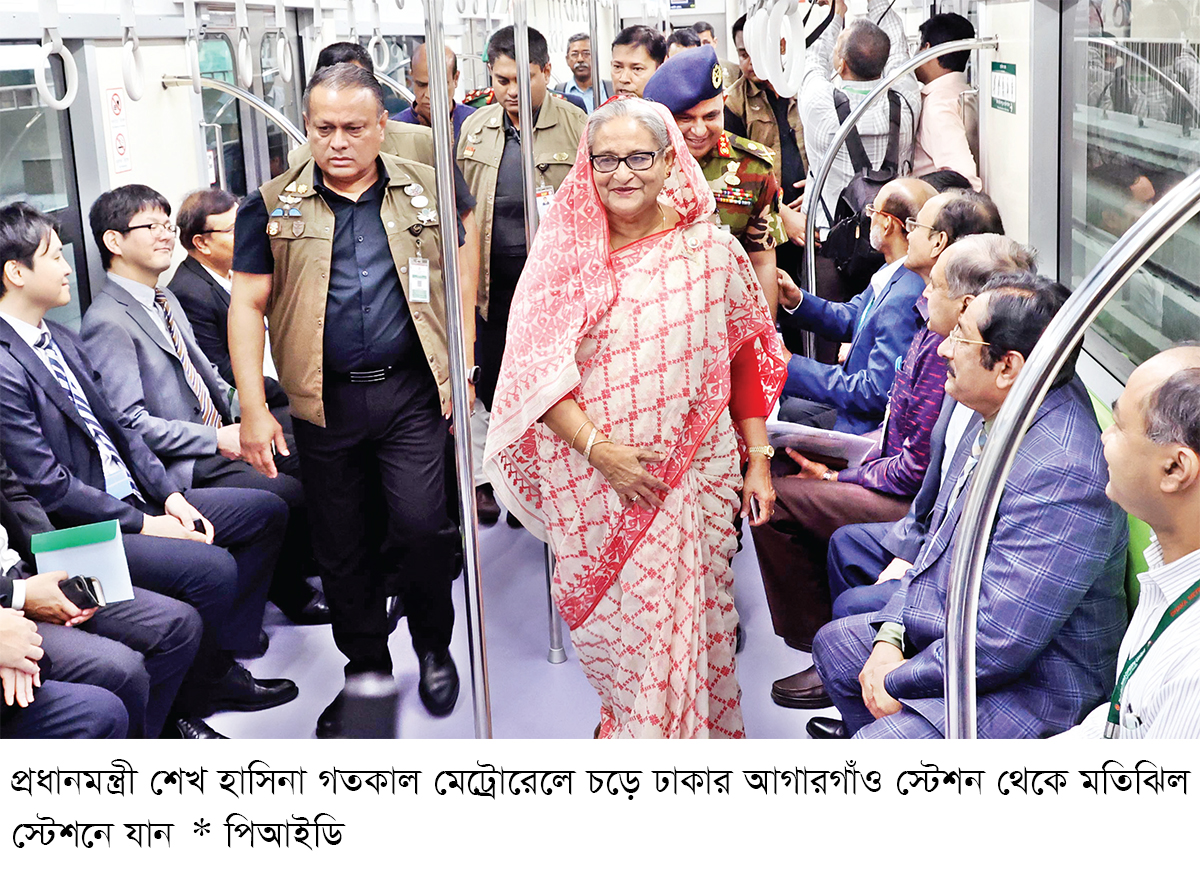 নিজেকে উৎসর্গ করেছি মানুষের কল্যাণে: মেট্রোরেলে চড়ে রাজধানীর আগারগাঁও থেকে মাত্র ২৫ মিনিটে মতিঝিলে পৌঁছেছেন প্রধানমন্ত্রী শেখ হাসিনা। শনিবার (৪ নভেম্বর) দুপুর ২টা ২৫ মিনিটে আগারগাঁও মেট্রোরেল স্টেশনে পৌঁছান প্রধানমন্ত্রী শেখ হাসিনা। ২টা ২৯ মিনিটে টিকিট সংগ্রহ করেন তিনি। এরপর তিনি সবুজ পতাকা উড়িয়ে আগারগাঁও-মতিঝিল মেট্রোরেলের উদ্বোধন ঘোষণা করেন। উদ্বোধন অনুষ্ঠান শেষে মেট্রোরেলে আগারগাঁও থেকে মতিঝিল যান প্রধানমন্ত্রী শেখ হাসিনা।