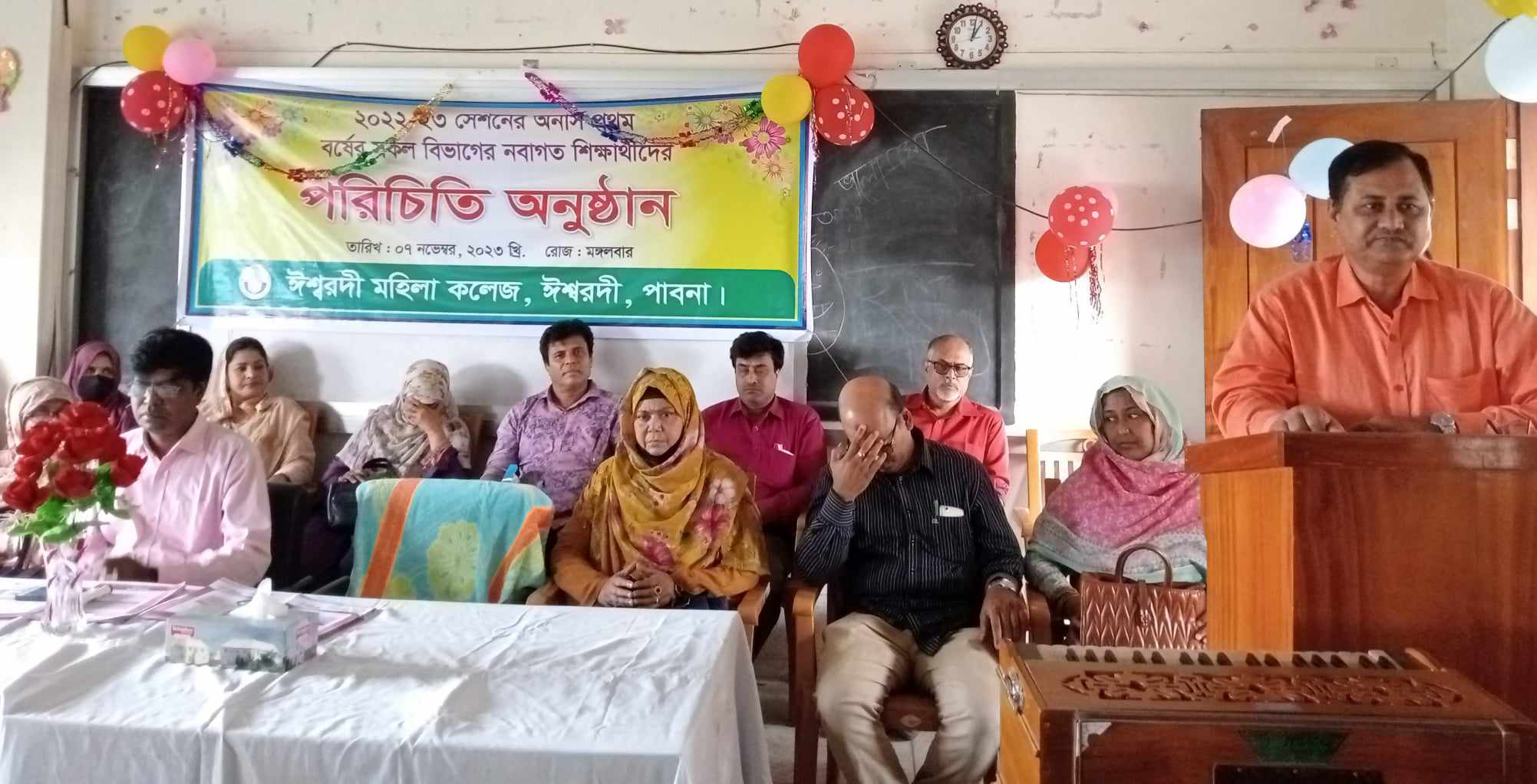 ঈশ্বরদী মহিলা কলেজের অধ্যক্ষ মোঃ হামিদুর রহমান এর সভাপতিত্বে অনুষ্ঠিত পরিচিতি সভায় বিভিন্ন বিভবাগের বিভাগীয় প্রধান,সিনিয়র শিক্ষক ও বালা,ইংরেজী,ইতিহাস,রাষ্ট্র বিজ্ঞান,সমাজ বিজ্ঞান ও দর্শন বিভাগের অনার্স শাখার শিক্ষকমন্ডলী,শতাধিক শিক্ষার্থী ও মহিলা কলেজ স্কাউট দলের মেয়েরা সমবেত ছিলেন। ।