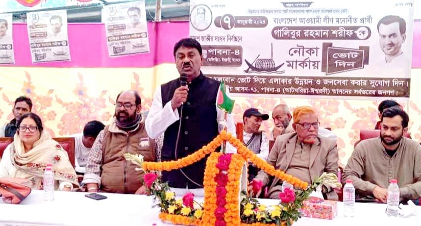 বঙ্গবন্ধু কন্যার দূরদর্শী নেতৃত্বে বাংলাদেশের যে উন্নয়ন অর্জিত হয়েছে তার মূল্যায়ন জনগন অবশ্যই করবে। আগামী ৭ জানুয়ারি অনুষ্ঠিতব্য দ্বাদশ জাতীয় সংসদ নির্বাচনে আওয়ামী লীগ মনোনীত (ঈশ্বরদী আটঘরিয়ার) প্রার্থী গালিবুর রহমান শরীফের নৌকা মার্কার প্রতি সেই ভালোবাসা জনগন ব্যালটের মাধ্যমে প্রকাশ করবে বলে মন্তব্য করেছেন ঈশ্বরদী উপজেলা আওয়ামী লীগের সাবেক সাধারণ সম্পাদক ও উপজেলা পরিষদের সাবেক চেয়ারম্যান মোখলেসুর রহমান মিন্টু।