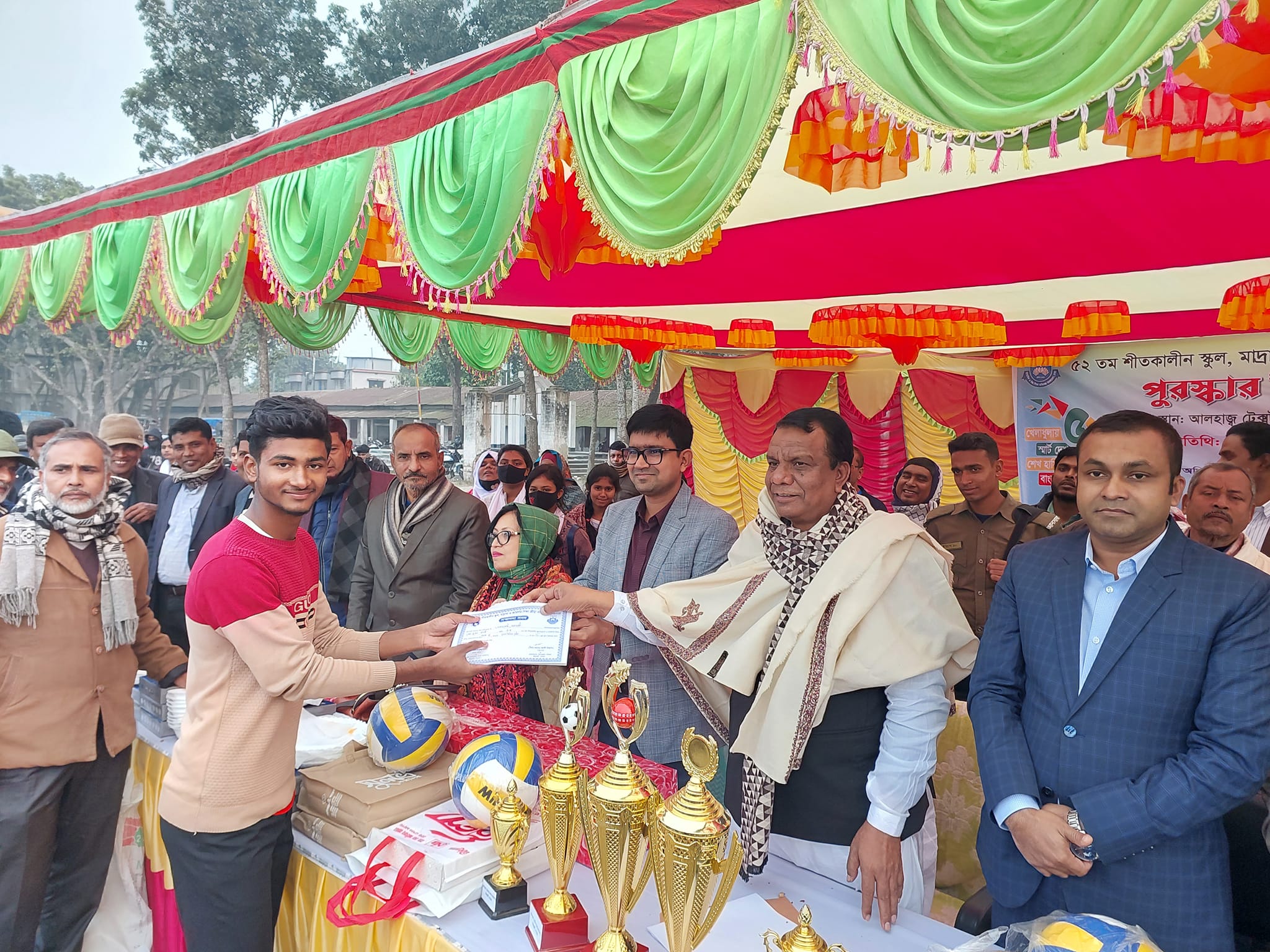 ৫২তম শীতকালীন স্কুল.মাদ্রাসা ও কারিগরি শিক্ষা ক্রীড়া প্রতিযোগিতায় ২০২৪ এর নতুন বছরের প্রথম পুরস্কার বিতরণী অনুষ্ঠান ২১ জানুয়ারি রবিবার আলহাজ্ব টেক্সটাইল মিলস উচ্চ বিদ্যালয় মাঠে অনুষ্ঠিত হয়েছে । উক্ত অনুষ্ঠানে উপস্থিত থেকে বিজয়ীদের মাঝে পুরষ্কার তুলে দেন উপজেলা নির্বাহী অফিসার সুবীর কুমার দাশ,উপজেলা পরিষদের ভারপ্রাপ্ত চেয়ারম্যান আব্দুস সালাম খান,মহিলা ভাইস চেয়ারম্যান আতিয়া ফেরদৌস কাকলী ও মাধ্যমিক শিক্ষা অফিসার মোঃ ওহেদুজ্জামান । এসময় ঈশ্বরদী উপজেলার বিভিন্ন শিক্ষা প্রতিষ্ঠানের প্রধান শিক্ষকগণসহ অন্যান্য শিক্ষক-শিক্ষিকা ও ছাত্র-ছাত্রীবৃন্দ উপস্থিত ছিলেন ।অনুষ্ঠান সঞ্চালনা করেন একাডেমিক সুপার ভাইজার মোঃ আরিফুল ইসলাম।