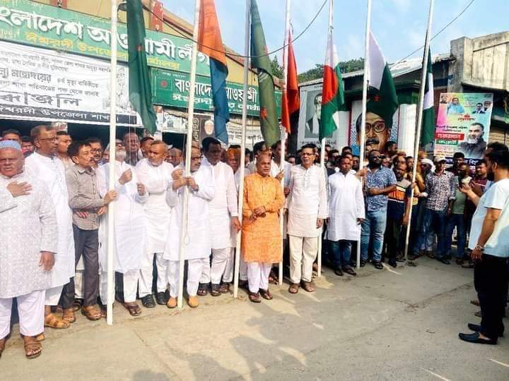 এরই ধারা বাহিকতায় কেন্দ্রীয় নির্দেশনা অনুযায়ী ঈশ্বরদী উপজেলা আওয়ামীলীগের বিপ্লবী সাধারন সম্পাদক আলহাজ্ব আবুল কালাম আজাদ মিন্টুর নেতৃত্বে সকাল ৮টায় দলীয় কার্যালয়ে জাতীয় পতাকা উত্তোলন ও জাতির পিতার প্রতিকৃতিতে পূ্ষ্পমাল্য অর্পন কর্নসূচি পালন করে। এসময় অন্যান্যদের মাঝে উপস্থিত ছিলেন-ঈশ্বরদী উপজেলা আওয়ামীলীগের সহ-সভাপতি রশিদুল্লাহ,গোলাম মোস্তফা চান্না মন্ডল,আকরাম আলী কান,শহিদুল আলম পাখি,আমিনুল ইসলাম দাদু,যুগ্ন সাধারন সম্পাদক ও উপজেলা পরিষদের ভারপ্রাপ্ত চেয়ারম্যান আব্দুস সালাম খান,সাংগঠনিক সম্পাদক ও জেলা পরিষদের সাবেক সদস্য শফিউল আলম বিশ্বাস,দপ্তর সম্পাদক মোঃ আজিজুর রহমান চঞ্চল,পৌর আওয়ামীলীগের সভাপতি ও পৌর মেয়র ইছাহক আলী মালিথা,সহ-সভাপতি আব্দুল খালেক,সহ-সভাপতি মোঃ আফজাল হোসেন খান,মহিলা ভাইস চেয়ারম্যান আতিয়া ফেরদৌস কাকলী,উপজেলা যুবলীগের সভাপতি শিরহান শরীফ তমাল,পৌর যুবলীগের সভাপতি আলাউদ্দিন বিপ্লব,সাধারন সম্পাদক মোঃ আরিফুল ইসলাম লিটন,স্বেচ্ছাসেবকলীগের আহবায়ক মাসুদ রানা,ছাত্রলীগের সভাপতি মল্লিক মিলন মাহমুদ তন্ময়,পৌর ছাত্রলীগের সভাপতি আবির হাসান শৈশব প্রমুখ।