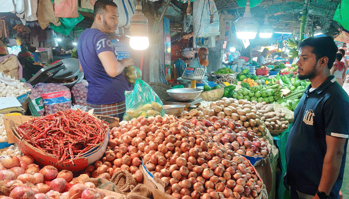 বাজারের প্রায় প্রত্যেকটি দোকানেই মিলছে আলু। পেঁয়াজের দোকানগুলোতেও থরে থরে সাজানো আছে পেঁয়াজের বস্তা। তারপরও দাম চড়া। প্রতি কেজি আলু বিক্রি হচ্ছে ৬০-৬৫ টাকা। মহল্লার কিছু কিছু দোকানে ৭০ টাকা পর্যন্ত আলু বিক্রি হতে দেখা গেছে। পেঁয়াজ বিক্রি হচ্ছে ৯৫ টাকা। কোনো কোনো দোকানে ১০০ টাকায়।