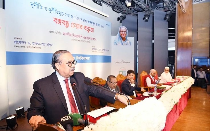 সোমবার বিকাল ৪টায় রাজধানীর আন্তর্জাতিক মাতৃভাষা ইনস্টিটিউট মিলনায়তনে ‘দুর্নীতি ও দুর্নীতিমুক্ত সমাজ গঠন সমন্বয়ে বঙ্গবন্ধুর ভাষ্য শীর্ষক বঙ্গবন্ধু চেয়ার বক্তৃতা’ অনুষ্ঠানে প্রধান অতিথির বক্তব্যে তিনি এসব কথা বলেন।