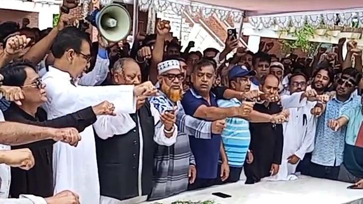 এর আগে নেতাকর্মীরা মাজার কমপ্লেক্স মসজিদে জোহরের নামাজ আদায় এবং শেখ হাসিনার নিরাপত্তা, সুস্থতা ও দীর্ঘায়ু কামনা করে দোয়া ও মোনাজাত করেন।পরে এক প্রতিক্রিয়ায় জেলা আওয়ামী লীগের সাধারণ সম্পাদক জিএম সাহব উদ্দিন আজম বলেন, বঙ্গবন্ধু কন্যা শেখ হাসিনার ইচ্ছা ছিল অবসরে তিনি তার পিতৃভূমি টুঙ্গিপাড়ায় থাকবেন; কিন্তু সেনাবাহিনী আমার নেত্রীর ইচ্ছার বিরুদ্ধে অস্ত্রের মুখে জিম্মি করে সেনাবাহিনীর একটি হেলিকপ্টারে করে ভারতে পাঠিয়ে দেয়। যত দিন পর্যন্ত আমাদের নেত্রীকে দেশের মাটিতে ফিরিয়ে আনতে না পারব, ততদিন আমরা ঘরে ফিরব না। প্রয়োজনে আমরা কঠোর আন্দোলন গড়ে তুলব।