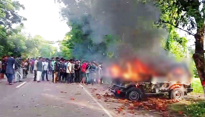 এক পর্যায়ে তারা সেনাবাহিনীর গাড়ি ভাঙচুর করে আগুন ধরিয়ে দেয়। এতে চার সেনা সদস্য আহত হয়েছেন।