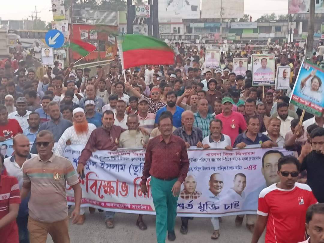 এসময় হাবিবুর রহমান হাবিব আরো বলেন,স্বৈরাচার শেখ হাসিনার ট্রেন বহরে হামলা মামলার ফরমায়েশি রায়ে এখনও আমাদের বিএনপির ৯ জন নেতাকর্মী কারাগারে রয়েছেন। এই নয়জনের মধ্যে দাশুড়িয়া ইউনিয়ন পরিষদের সাবেক চেয়ারম্যান জননেতা শরিফুল ইসলাম তুহিনের মুক্তির দাবিতে আজ হাজার হাজার নেতাকর্মী রাজপথে নেমে এসেছে। ঈশ্বরদীতে বিএনপির রাজনীতিকে ভিন্নখাতে প্রবাহিত করার চেষ্টা করা হচ্ছে, আওয়ামী লীগের স্বৈরাচারদের আশ্রয়দাতা হিসেবে কাজ করে অনেকেই দলের ভাবমূর্তি ক্ষুণ্ন করছে। আমাদের নেতা তারেক রহমানের যে নির্দেশ তা আমরা অক্ষরে অক্ষরে পালন করে যাবো।