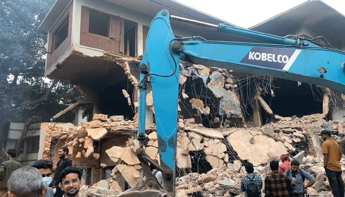 ৩২ নম্বর বাড়িতে আগুন-ভাঙচুর : গত বুধবার রাতে বাড়ি ভাঙার পর ৩২ নম্বর বাড়িটির অবশিষ্ট ছিল লিফটের কাঠামো, সীমানাপ্রাচীরের লোহার প্যাঁচানো তার এবং ধ্বংসস্তূপ থেকে বেরিয়ে পড়া রড। গতকাল বাড়িটির পেছনে (উত্তর দিকে) ছয়তলা ভবনটিও ভাঙতে দেখা গেছে। ভবনটির ভেতরে থাকা বিভিন্ন ধরণের বই, বই রাখার স্টিলের আলমারি, লিফটের লোহার কাঠামো, গাড়ি রাখার টিনশেড ও কাঠামো, জানালা-দরজার কাঠসহ বিভিন্ন জিনিস ভেঙে নিয়ে যেতে দেখা গেছে। এ সময় শেখ হাসিনার স্বামীর বাড়ি সুধা সদনেও ভাঙচুর ও আগুন দেওয়া হয়।