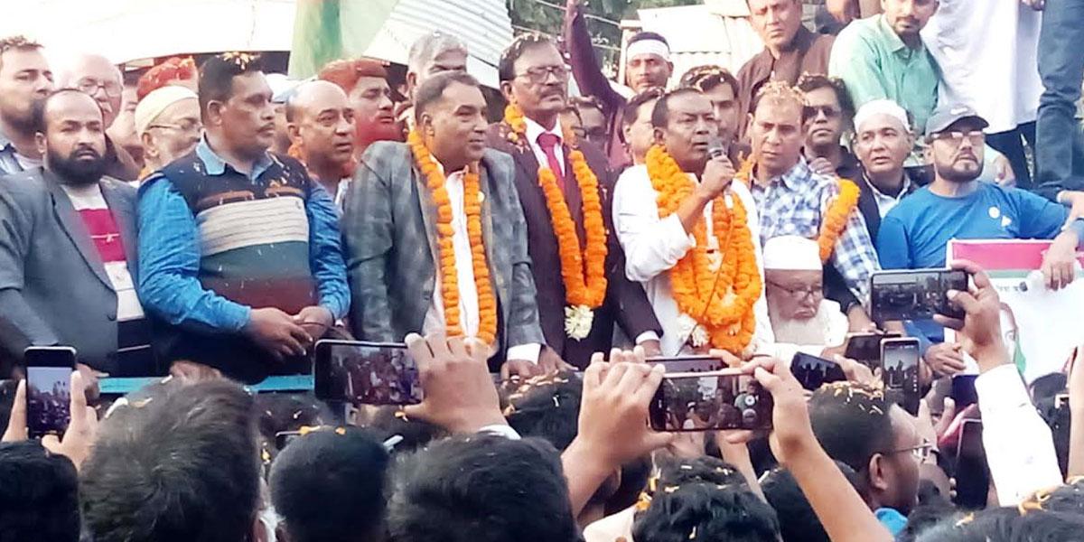 গণসংবর্ধনায় বক্তব্য রাখেন হাবিবুর রহমান হাবিব, আইনজীবী জামিল আক্তার এলাহী, এ কে এম আক্তারুজ্জামান আক্তার, মকলেছুর রহমান বাবলু, জাকরিয়া পিন্টু, শামসুল হক, আজিজুর রহমান শাহীন ও রেজাউল করিম শাহীন।