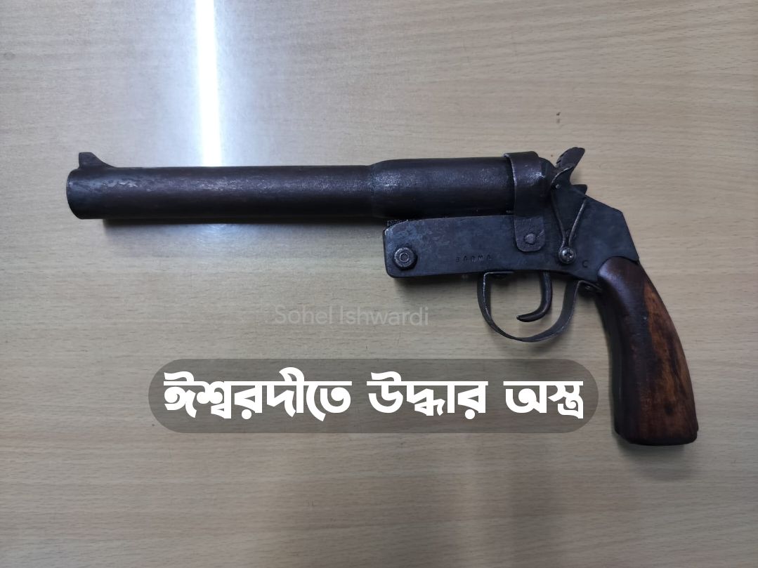 ঈশ্বরদীতে অভিযান চালিয়ে একটি পরিত্যক্ত আগ্নেয়াস্ত্র উদ্ধার করেছে থানা পুলিশ। শনিবার (২০ এপ্রিল) গভীর রাতে দাশুড়িয়া ইউনিয়নের পাকুড়িয়া ডিগ্রীপাড়া গ্রামে এ অভিযান পরিচালিত হয়। পুলিশ জানায়,গোঁপন সংবাদের ভিত্তিতে তারা জানতে পারে,ঈশ্বরদী-টু-পাবনা মহাসড়কের পাশের একটি জঙ্গলে কিছু দুষ্কৃতিকারী অপরাধমূলক কর্মকাণ্ডের উদ্দেশ্যে অবস্থান করছে। খবর পেয়ে ঈশ্বরদী থানার ভারপ্রাপ্ত কর্মকর্তা (ওসি) শহিদুল ইসলামের নেতৃত্বে পুলিশের একটি দল রাতেই ঘটনাস্থলে যায়।
