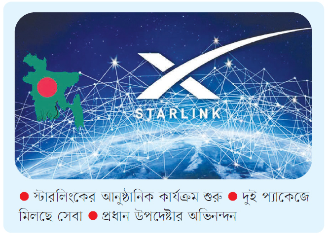 স্যাটেলাইটভিত্তিক ইন্টারনেট সেবা প্রতিষ্ঠান স্টারলিংক আনুষ্ঠানিকভাবে যাত্রা শুরু করল বাংলাদেশে। গতকাল মঙ্গলবার সকালে নিজেদের এক্স হ্যান্ডলে এক পোস্টে বিষয়টি জানিয়েছে মার্কিন ধনকুবের ইলন মাস্কের প্রতিষ্ঠানটি। স্টারলিংকের আনুষ্ঠানিক যাত্রার কথা নিশ্চিত করেছেন অন্তর্বর্তী সরকারের ডাক, টেলিযোগাযোগ ও তথ্যপ্রযুক্তি মন্ত্রণালয়ের দায়িত্বপ্রাপ্ত প্রধান উপদেষ্টার বিশেষ সহকারী ফয়েজ আহমদ তৈয়্যব। বিষয়টি নিয়ে প্রধান উপদেষ্টা ড. মুহাম্মদ ইউনূস সংশ্লিষ্ট সবাইকে অভিনন্দন জানিয়েছেন।