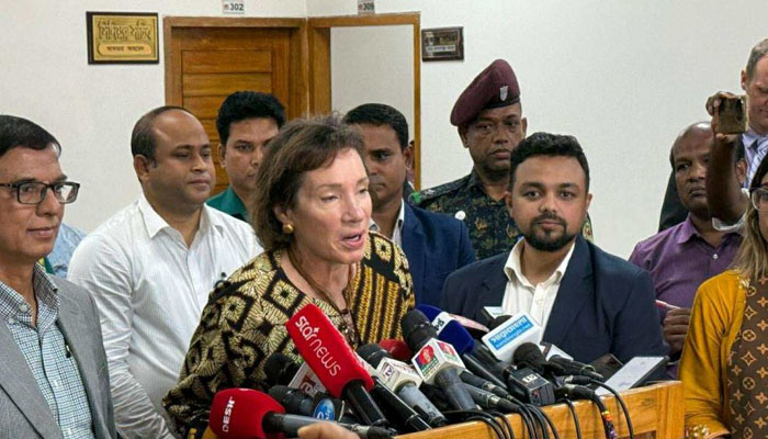ট্র্যাসি অ্যান জ্যাকবসন বলেন, ‘অনেক গুজব ও ষড়যন্ত্র তত্ত্ব ঘুরে বেড়াচ্ছে। তাই আমি স্পষ্ট করতে চাই, যুক্তরাষ্ট্র সরকারের অবস্থান কী। আমরা অধ্যাপক ইউনূসের নেতৃত্বাধীন অন্তর্বর্তী সরকার এবং নির্বাচন কমিশনের উদ্যোগকে সমর্থন করি—যাতে আগামী বছরের শুরুতে অবাধ ও সুষ্ঠু নির্বাচন অনুষ্ঠিত হতে পারে।’