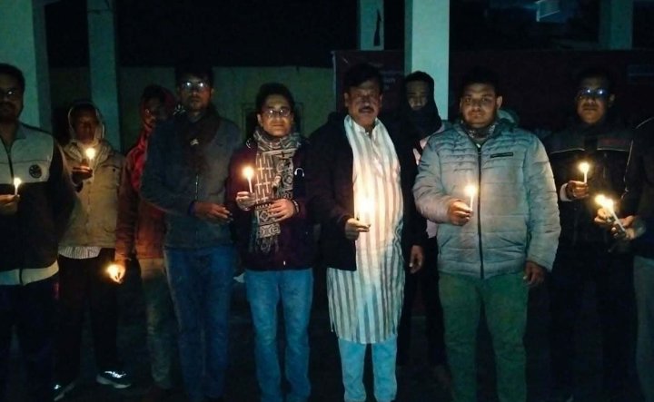 ধর্ম অবমাননার মিথ্যা অযুহাতে ময়মনসিংহের ভলুকায় দীপু চন্দ্র দাসের নৃশংস হত্যাকারীদের ফাঁসির দাবিতে ঈশ্বরদী শ্রী শ্রী কর্মকার পাড়া মাতৃ মন্দিরে প্রাঙ্গণে জাতীয় হিন্দু মহাজোট লাইট শার্ট ডাউন পালন করে।