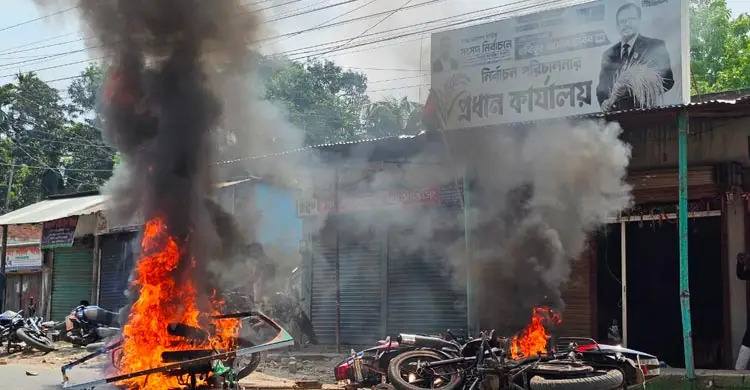 বিএনপির কার্যালয় ভাঙচুর, পুলিশ কর্মকর্তাসহ আহত অর্ধশত ঈশ্বরদীতে বিএনপির দুই গ্রুপের সংঘর্ষে রণক্ষেত্র গুলিবিদ্ধ সহ আড়ত ১৭ নিজস্ব প্রতিনিধি ঈ।। ঈশ্বরদীতে বিএনপির দুই গ্রুপে ব্যাপক সংঘর্ষ ও গোলাগুলির ঘটনা ঘটেছে। এ সময় দলীয় কার্যালয় ভাঙচুরসহ মোটরসাইকেলে অগ্নিসংযোগের ঘটনাও ঘটে। এতে অতিরিক্ত পুলিশ সুপারসহ উভয়পক্ষের অন্তত অর্ধশত ব্যক্তি আহত হয়েছেন। আহতদের রাজশাহী মেডিকেল কলেজ (রামেক) হাসপাতাল এবং ঈশ্বরদী উপজেলা স্বাস্থ্য কমপ্লেক্সে ভর্তি করা হয়েছে। মঙ্গলবার (২৩ মার্চ) সকাল সাড়ে ১১টার দিকে ঈশ্বরদী শহরের রেলগেট এবং পোস্ট অফিস মোড়সহ আশপাশের এলাকায় এই সংঘর্ষ ঘটে। পাবনা জেলা বিএনপির আহ্বায়ক হাবিবুর রহমান হাবিব এবং দল থেকে বহিষ্কৃত ও ত্রয়োদশ জাতীয় সংসদ নির্বাচনে বিদ্রোহী প্রার্থী জাকারিয়া পিন্টুর কর্মী সমর্থকরা সংঘর্ষে জড়ায়। জানা যায়, হাবিবুর রহমানের সমর্থকরা পৌর শহরের পোস্ট অফিস মোড়ে সন্ত্রাসীদের বিরুদ্ধে বিএনপির অস্থায়ী কার্যালয়ে সংবাদ সম্মেলন করে। পরে শহরের পোস্ট অফিস মোড় থেকে একটি বিক্ষোভ মিছিল নিয়ে রেলগেট অতিক্রম করার সময় জাকারিয়া পিন্টুর সমর্থকরা বিক্ষোভ মিছিলের ওপর অতর্কিত হামলা চালায়। এসময় ঈশ্বরদী থানার সামনে প্রকাশ্যে গুলি ও ককটেল বিস্ফোরণের ঘটনা ঘটে। এতে উভয়পক্ষের অন্তত ৫০ জন আহত হন। সংঘর্ষের একপর্যায়ে হাবিবের প্রধান নির্বাচনী কার্যালয়ে ব্যাপক ভাঙচুর চালায় প্রতিপক্ষরা। একইসঙ্গে কার্যালয়ের সামনে থাকা দলীয় নেতাকর্মীদের ৫-৬টি মোটরসাইকেলে অগ্নিসংযোগ করে। এরমধ্যে দৈনিক কালবেলা পত্রিকার ঈশ্বরদী প্রতিনিধি আমিরুল ইসলাম রিংকুর মোটরসাইকেলও ব্যাপক ভাঙচুর করা হয়। এছাড়া আরও ২৫ থেকে ৩০টি মোটরসাইকেল ভাঙচুর হয়েছে। এই ঘটনায় এখন পর্যন্ত কোন মামলা না হলেও যৌথবাহিনীর অভিযানে বেশ কয়েকজন কে আটকের খবর পাওয়া গেছে।