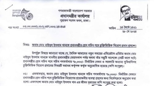 প্রধানমন্ত্রীর প্রেস সচিব হলেন নাঈমুল ইসলাম খান