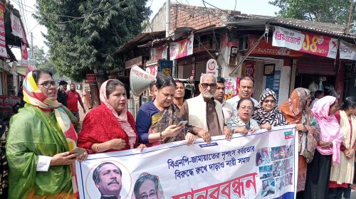 বিএনপি-জামায়াতের অবরোধের বিরুদ্ধে ঈশ্বরদীতে মহিলা আওয়ামীলীগের মানববন্ধন ও বিক্ষোভ সমাবেশ…