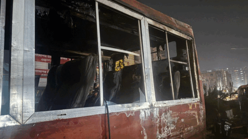 সাভারে দাঁড়িয়ে থাকা বাসে আগুন, লাফিয়ে বাঁচলেন চালক